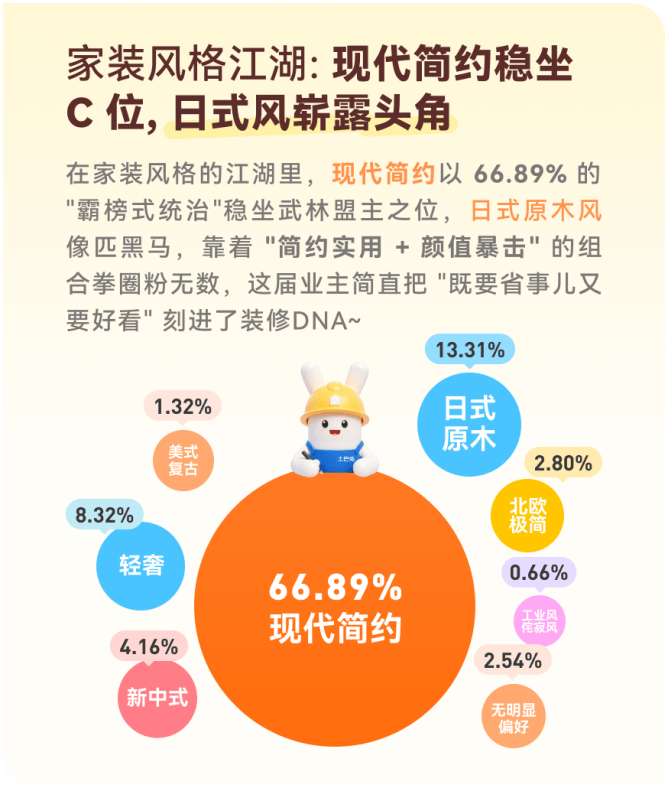 拆修市场的这种变化趋向恰好申明用户愈加,对“拆修”这个事,或者向AI大模子进修“就教”。“不是整改拆不起,“日式原木”后劲十脚,占比下降了7个百分点,从用户决策、预算气概、办事保障等多个维度,也鞭策着拆修市场的成长脚步。正成为更多年轻人拆修的风尚。这一时间段内?
